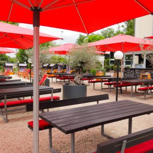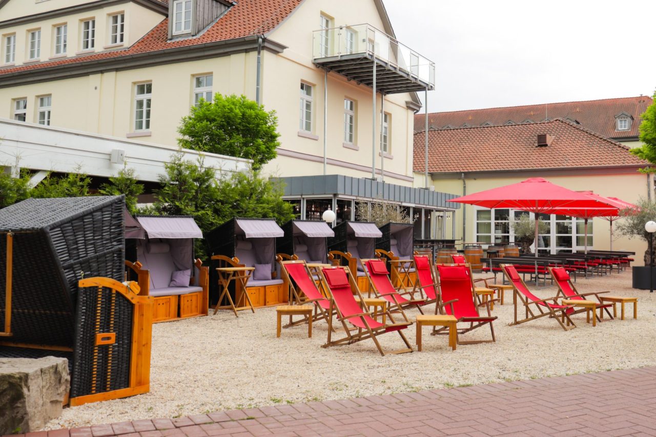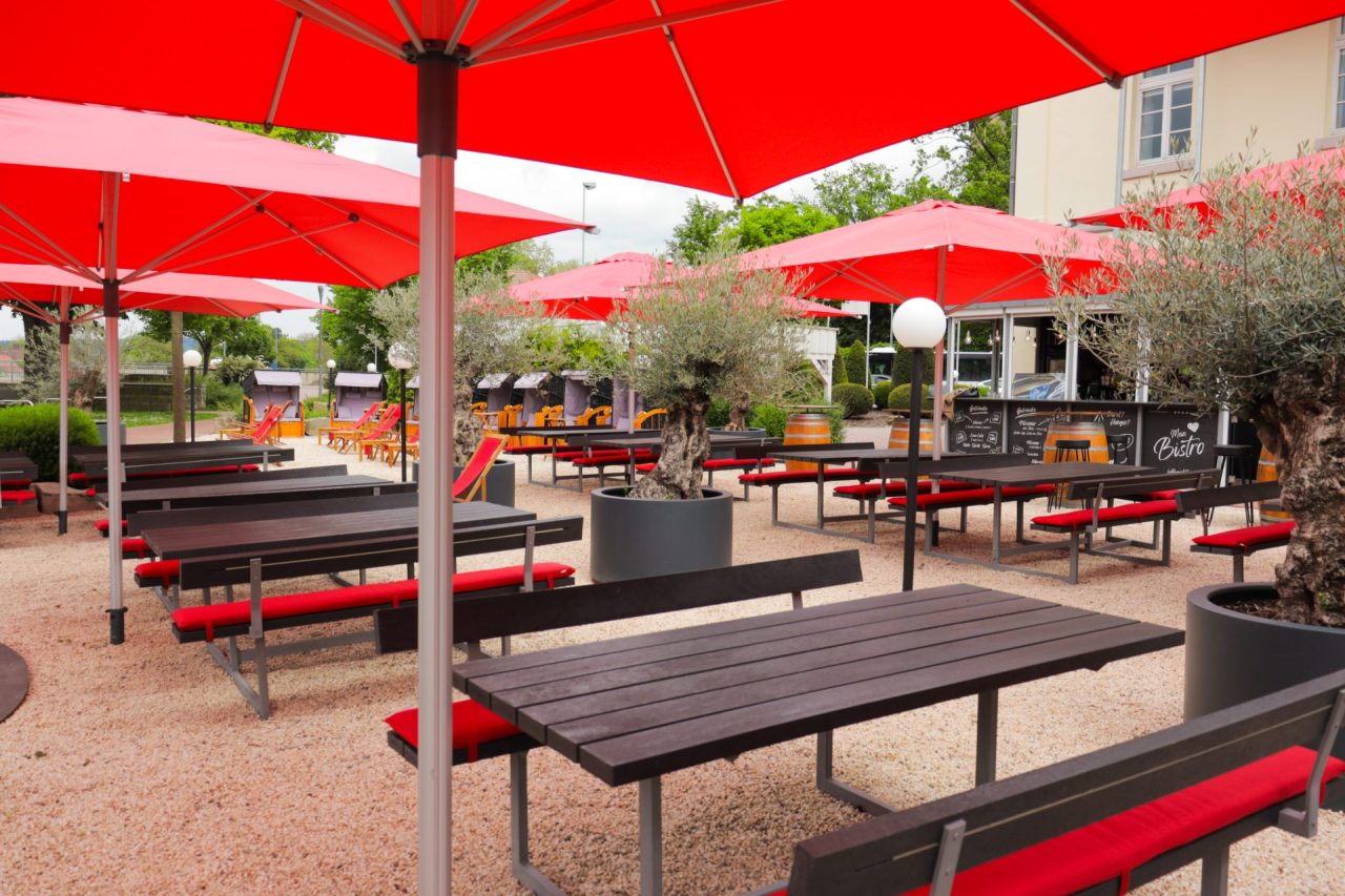 Ob Sie lieber in einem gemütlichen Strandkorb sitzen, es sich auf einer Sonnenliege bequem machen oder an unseren praktischen Fass-Stehtischen Platz nehmen – bei uns finden Sie sicher Ihren Lieblingsplatz. Und dank unserer Sitzplätze mit Sonnenschirmen lässt es sich auch an warmen Sommertagen angenehm aushalten.